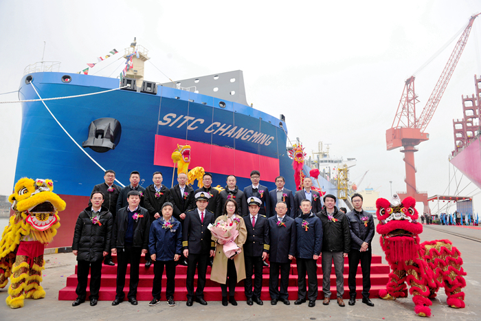 2月23日,揚子江船業(yè)與海豐國際在新?lián)P子造船隆重舉行了2600TEU集裝箱船“SITC CHANGMING”(海豐昌明)輪的命名儀式。海豐航運集團總裁助理紀文光先生,上海海豐船舶管理中心總經(jīng)理李瑞民先生,上海船舶研究設計院科技委主任萬水生先生,上海船舶研究設計院集裝箱船設計大師林潔女士,日本船級社(中國)有限公司高級經(jīng)理丁文忠先生,我集團副總經(jīng)理杜成忠先生、副總經(jīng)理周科偉先生,以及相關領導和嘉賓共同出席了命名儀式。