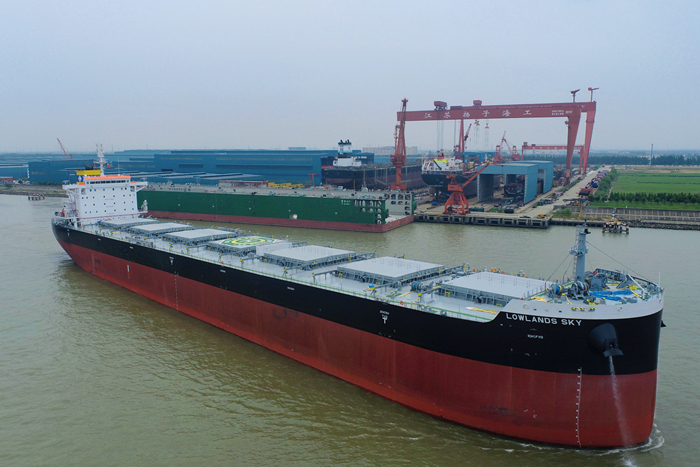 5月26日,揚(yáng)子三井造船為日本船東建造的82300DWT散貨船“LOWLANDS SKY”輪(“樓蘭天空”,掛巴拿馬旗)順利交付離廠。
