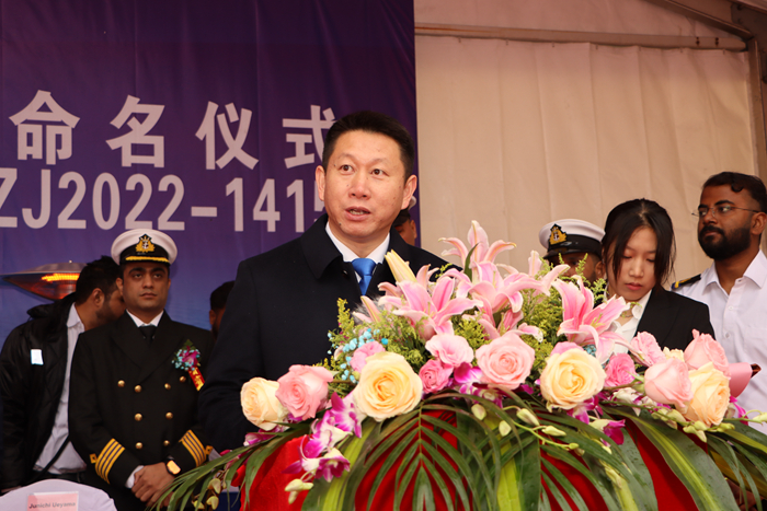 宋書明先生代表船廠致辭,他表示:“該首制船含春節(jié)建造周期約10個月,在此過程中,船東、船級社和船廠都致力于建造一艘優(yōu)質(zhì)高性能船舶,堅信在各方的共同努力下,后續(xù)系列船舶會有更出色的表現(xiàn)。今天,終于迎來為該船命名的重要時刻。感謝船東現(xiàn)場團隊和DNV驗船師的支持和幫助以及參與該船建造的揚子三井造船員工的不懈努力。讓我們繼續(xù)與船東和船級社緊密合作,為建造更安全、更環(huán)保、更具國際競爭力的船舶而努力。我們將按照船東和全球市場的需求,用心打造每一艘船?!?/p>